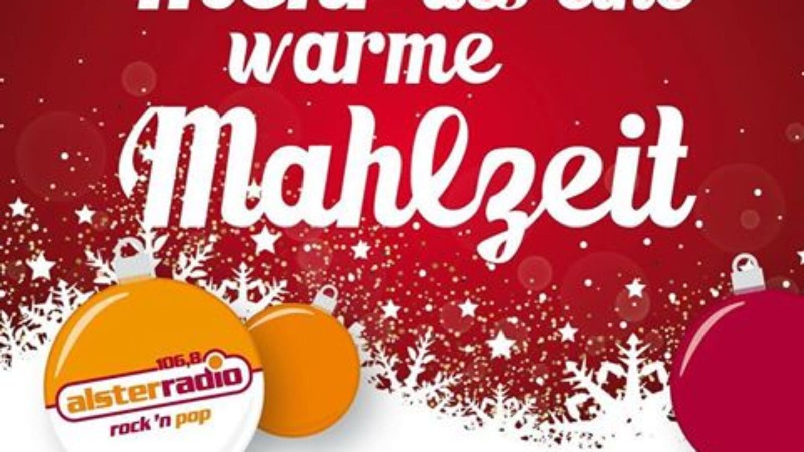 Alsterradio veranstaltet wieder die größte Charity-Weihnachtsfeier Hamburgs, um Obdachlosen ein Drei-Gänge-Menü sowie Lebensmittel, Hygieneartikel und Winterbekleidung zu spendieren. Unterstützt wird die Veranstaltung von zahlreichen Promis wie Ingo Pohlmann und Harry Schulz. Die Moderation übernimmt Carsten Spengemann.
