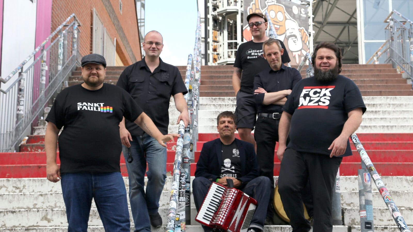 Der Bandname verkündet, dass diese Kombo aus St. Pauli kommt. Wie der berühmte Stadtteil, sind auch die Texte der teils gecoverten, teils selbst geschriebenen Songs politisch und widerständig. Die leidenschaftlichen FC St. Pauli sowie Glasgow Celtic F.C. Fans spielen traditionelle Folk-Instrumente.