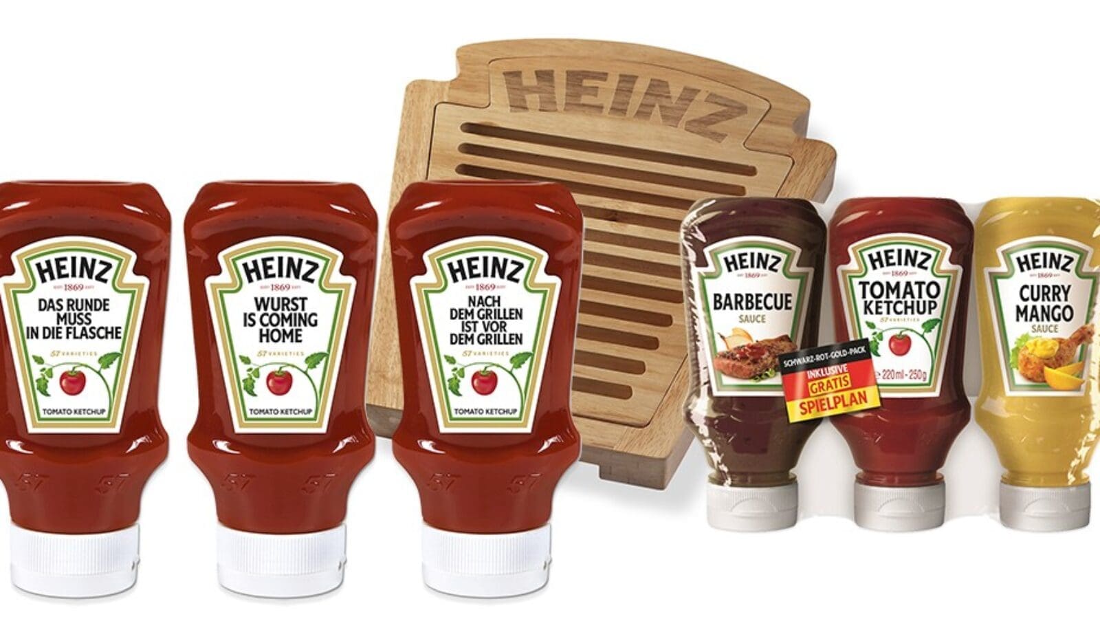 Pünktlich zur Europameisterschaft unterstützt HEINZ die Fußball-Fans mit einem eigens dafür entworfenen 3er Pack! Die schwarz-rot-goldene Limited Edition besteht aus der „offensiven Dreierkette“ HEINZ Barbecue Sauce, HEINZ Tomato Ketchup und HEINZ Curry Mango Sauce. So sorgt HEINZ für unvergessliche Traumpässe in den Strafraum deutscher und gegnerischer Grillteller. Außerdem wird eine Limited Edition des HEINZ Tomato Ketchup mit witzigen Fußballsprüchen für hohe Abverkaufszahlen sorgen. Durch diese stimmige Themen-Promotion wird HEINZ zum unverzichtbaren Bestandteil auf jeder Grillparty und bei jedem Match. Egal ob Gruppenphase oder Finale – HEINZ bringt Würze ins Spiel!