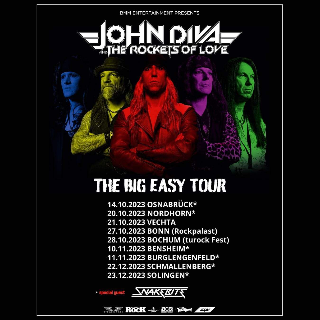 Kurzer Changeover und JOHN DIVA AND THE ROCKETS OF LOVE betreten die Bühne. Kompliment an alle Mitarbeitenden im BAHNHOF PAULI, es funktioniert alles reibungslos. So macht ein Abend Spaß. Die Klänge des Intros vom neuen Album erklingen, die Wellen Kaliforniens schwappen in den BAHNHOF PAULI und kündigen die Band rund um JOHN an. Von der ersten bis zur letzten Reihe sieht man die Vorfreude auf einen bunten Strauß an Musik. JOHN DIVA steht für USA Hardrock frisch aus den 80ern. Bekannt geworden sind sie als Coverband, doch mittlerweile gibt es das 3. Album mit eigenen Songs der Band. So ist es auch wenig überraschend, dass an diesem Samstag zum größten Teil das eigene Material gespielt wird. Am Ende des Tages ist eine bunte Mischung aus der Bandgeschichte, natürlich mit dem Augenmerk auf das neue Album zu hören. Die Band zelebriert den american Glam- & Hardrock aus den 80er Jahren bis in die Zehenspitzen. Es macht Spaß zuzusehen und zuzuhören. Große Melodien, die besser in Stadien, als in kleine Clubs passen, prasseln auf Fans und Zuhörer ein. Natürlich dürfen das ein oder andere Cover nicht fehlen und so findet man im Set die Songs „Fat Bottomed Girs“, „I Hate Myself For Lovin You“ und „Don’t Stop Believin’“. MARKUS KULLMANN ist der Schlagzeiger der der Band und hebt sich immer besonders in seinem Drumsolo hervor, das ist ein absolut fester Bestandteil der Show ist – und es macht unheimlich Spaß, ihm dabei zuzusehen. Er hinterlässt staunende Gesichter und beweist sehr viel Rhythmus mit seiner Spielart. Es fasziniert wirklich. Alles in Allem gibt die ganze Band alles, um die Fans zu beglücken. JOHN flirtet immer wieder mit der ersten Reihe, gibt sich nahbar und tauscht mit den Frontrowgirls den einen oder anderen heißen Blick aus. Insgesamt Spielt JOHN mit seinen Freunden ein Set von 22 Songs, nur um dann auch noch für die Fans am Merch da zu sein und für Fotos Parat zu stehen. Dieser Abend hinterlässt bei allen Diva Lovern ein gutes Gefühl. Das machen wir wieder!